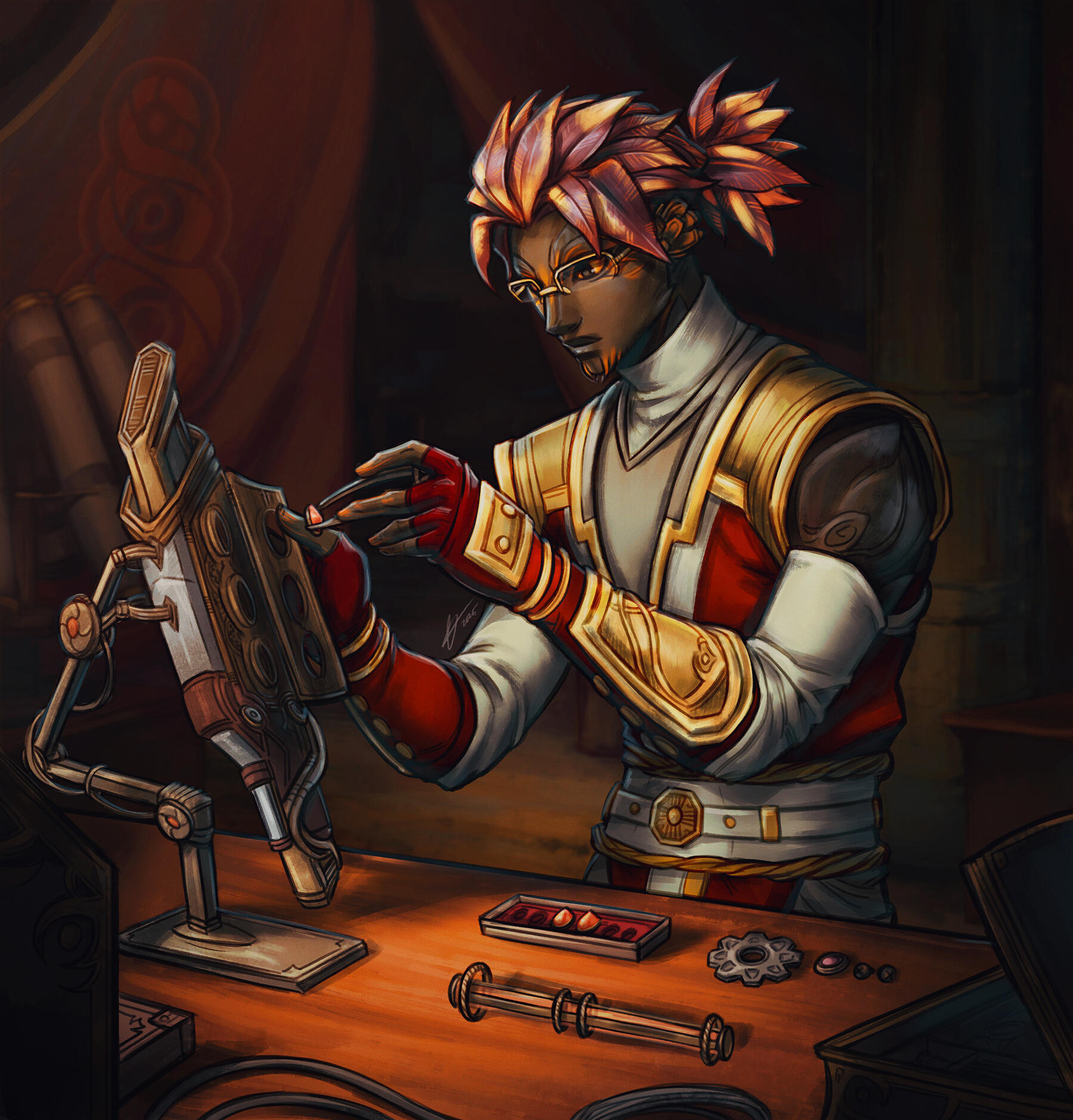 Short Description Sadistic Vigil Lieutenant who turned down Warmaster rank because he wanted a more flexible lifestyle. Has some anger issues and is prone to be a little violent to fix his issues. He has put all his points in Strength and Speed. He's average smarts with the exception of Battle Tactics, especially good in combat and can pick up any weapon/combat vehicles easily.Once Poly now monogamous and married to his wife, Caira. Currently runs around with her as Co-Wayfinder around Tyria.Adopted 3 Sylvari saplings, Rosa, Vince, and Laurane.Hobbies include working out, cleaning, sparring, and smoking.